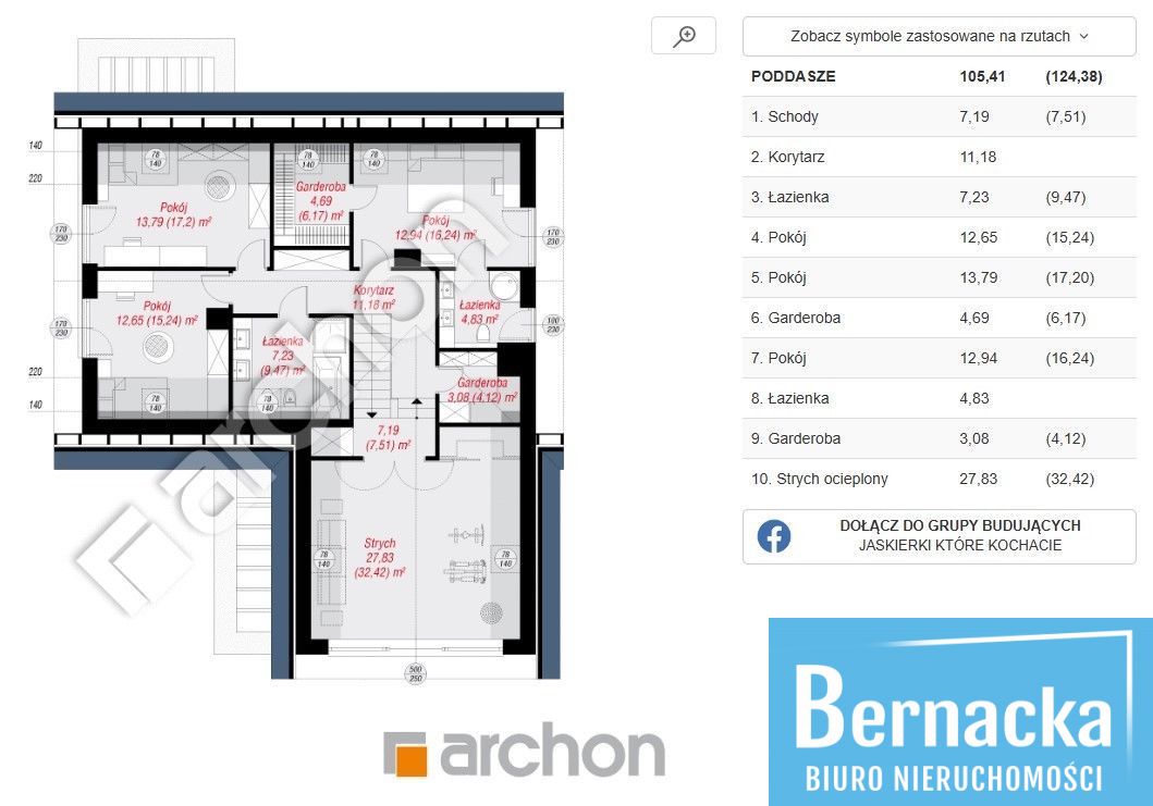 Budynek posiada 2 kondygnacje parter oraz poddasze użytkowe.