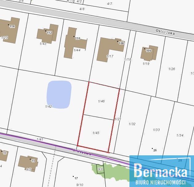 Grunt pod zabudowę mieszkaniową jednorodzinną składający się z 2 działek budowlanych o łącznej powierzchni 1512 mkw przy ul. Gruszowej na osiedlu Jerzmanowo (zachodnia część Wrocławia).