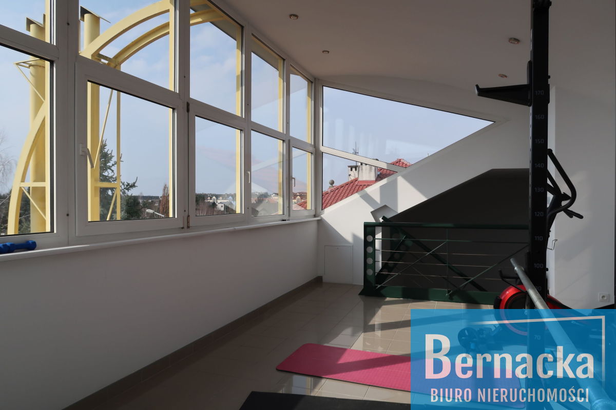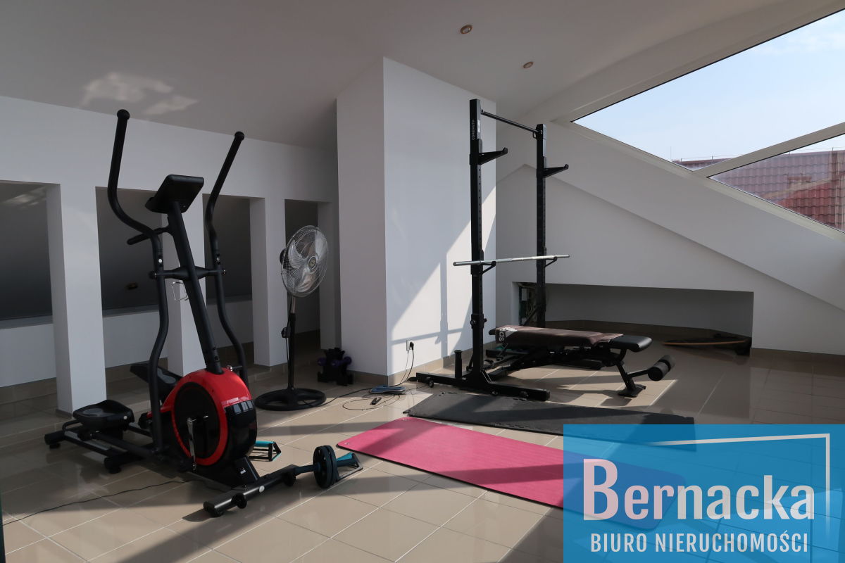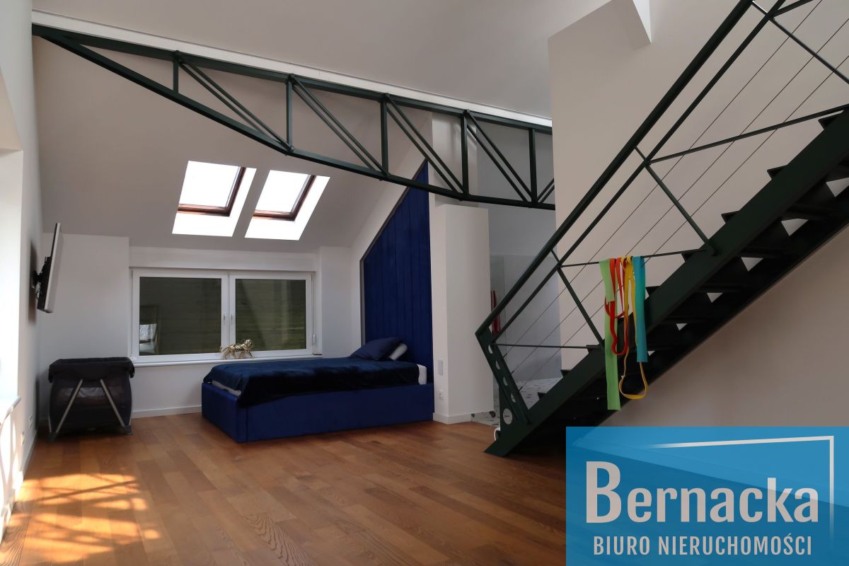 Z sypialni wejście na antresolę o pow. 23 mkw, która obecnie pełni funkcję siłowni.