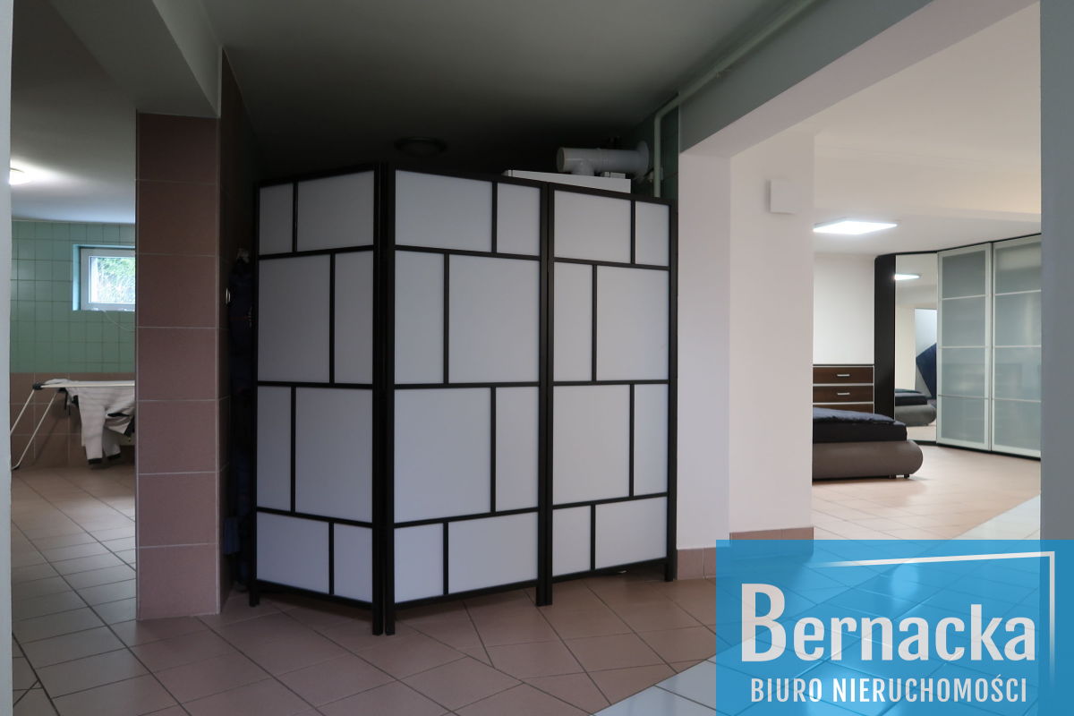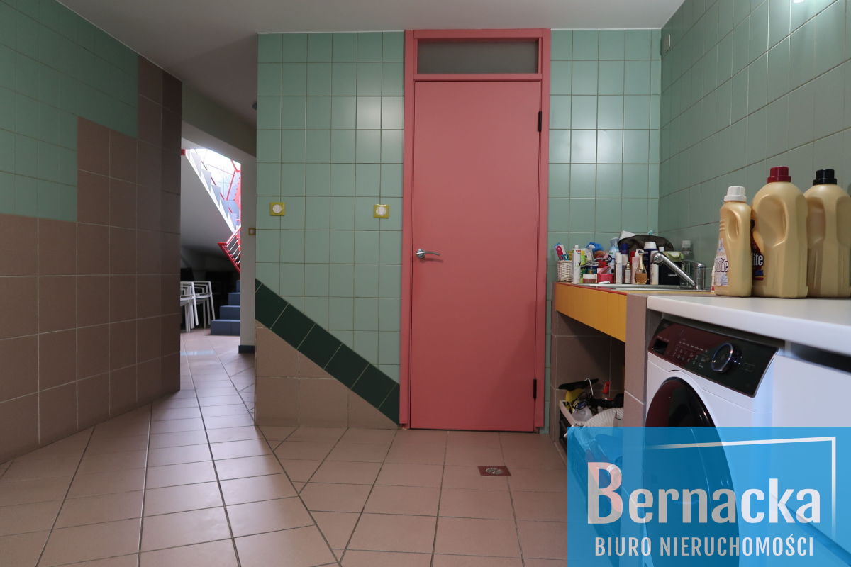 Budynek posiada zagospodarowaną piwnicę (123 mkw) pełniącą funkcję mieszkalną. Znajdują się tutaj 2 sypialnie, łazienka, dodatkowo w piwnicy pralnia, suszarnia, pomieszczenie gospodarcze.