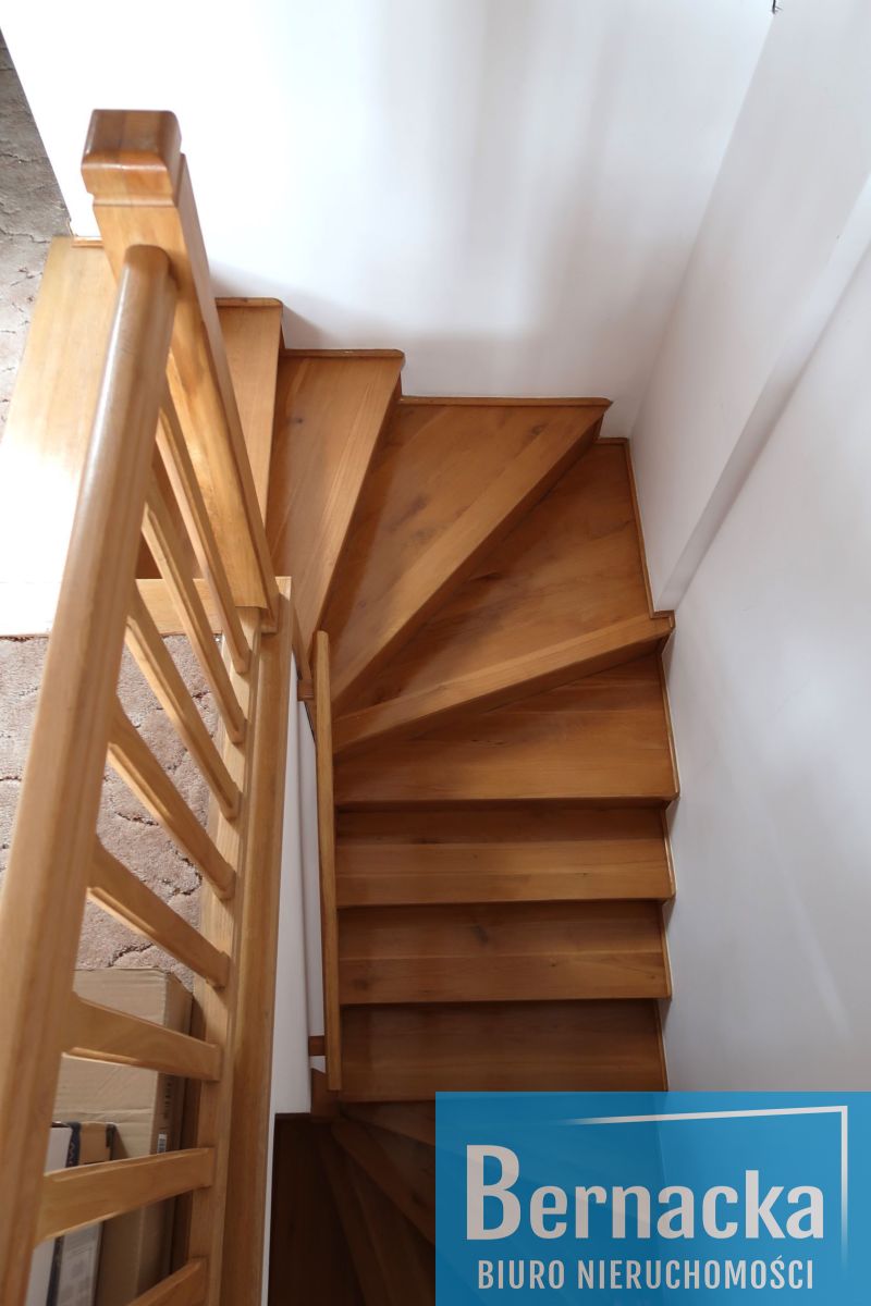Na piętro prowadzą ładne, dębowe schody. W dwóch pokojach szafy w zabudowie, wszystkie pokoje umeblowane.