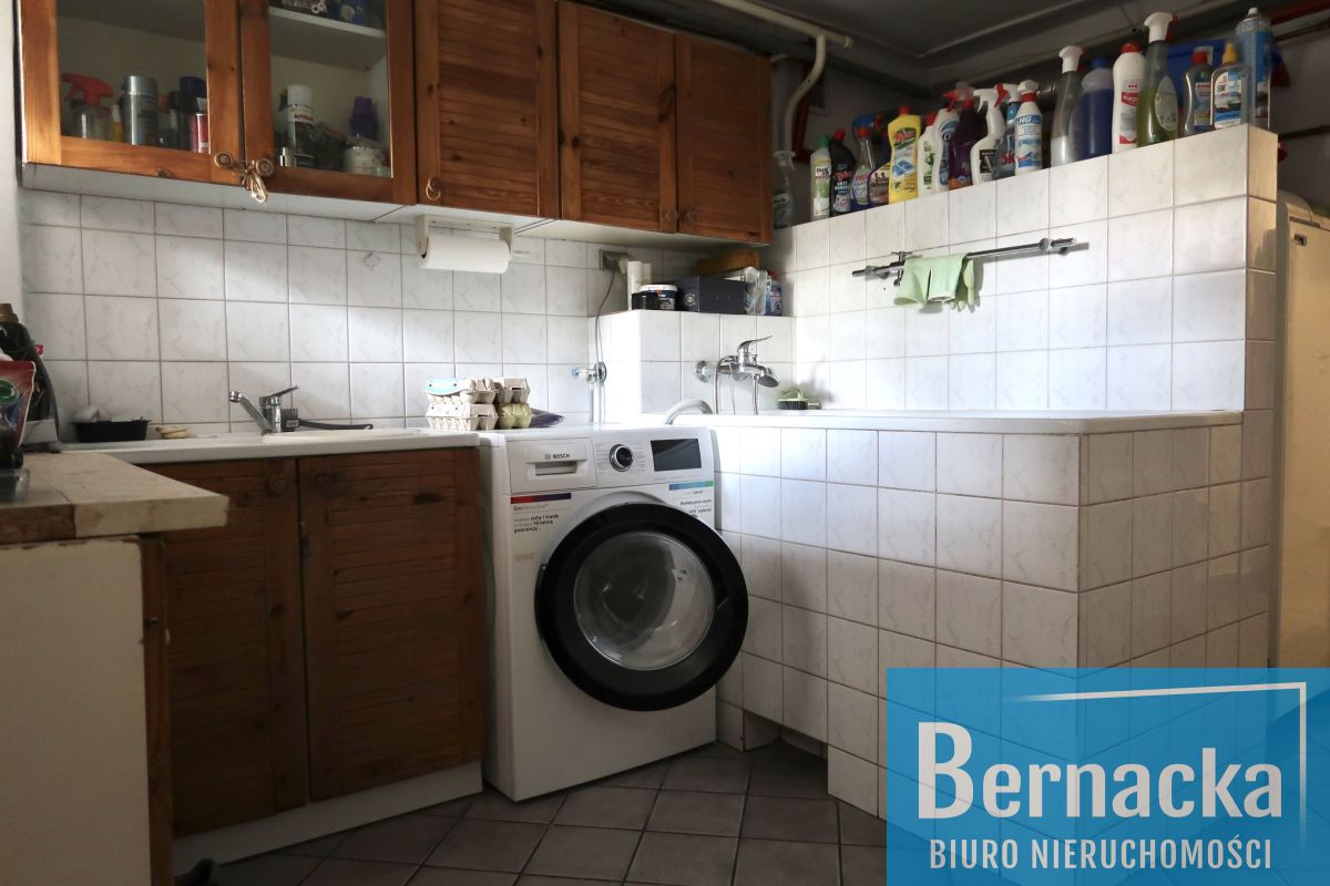 W piwnicy garaż jednostanowiskowy, duża pralnia z suszarnią, pomieszczenie gospodarcze, spiżarnia.